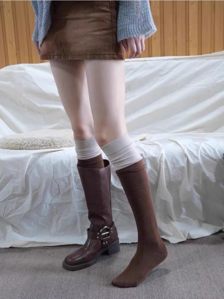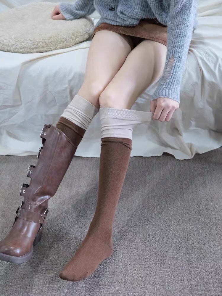 Autumn And Winter Coffee Color Maillard Style, Super Thin Legs, Advanced Color Matching Boots Over The Knee Socks