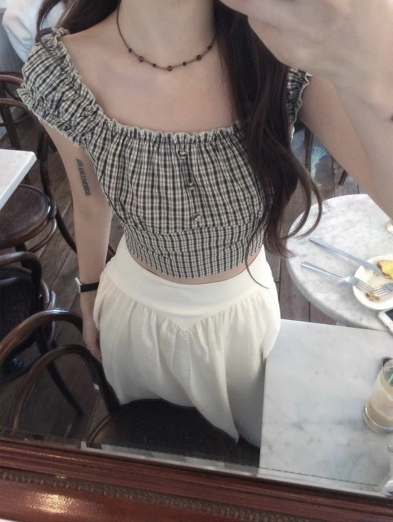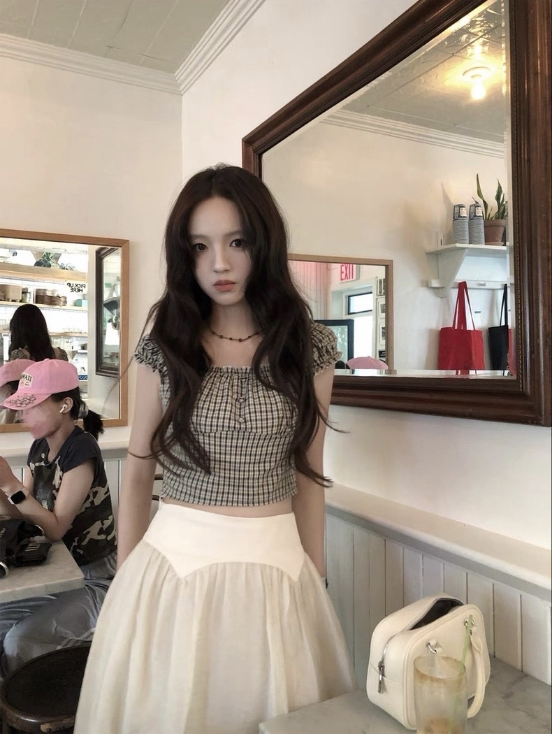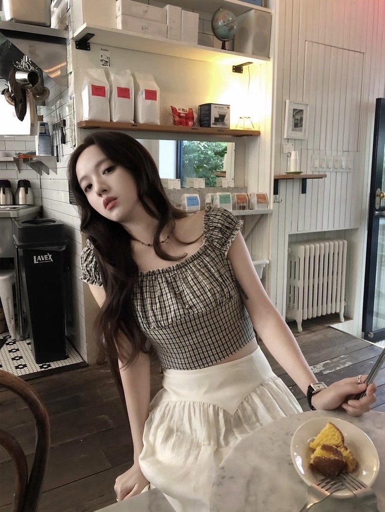 The ruffled edges and small flying sleeves add a sense of refinement, and the overall fit is slim and tall.