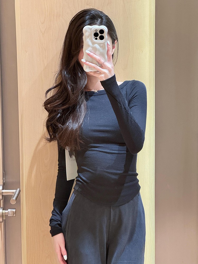 Boat Neck Ribbed Sport Long Sleeve Tee