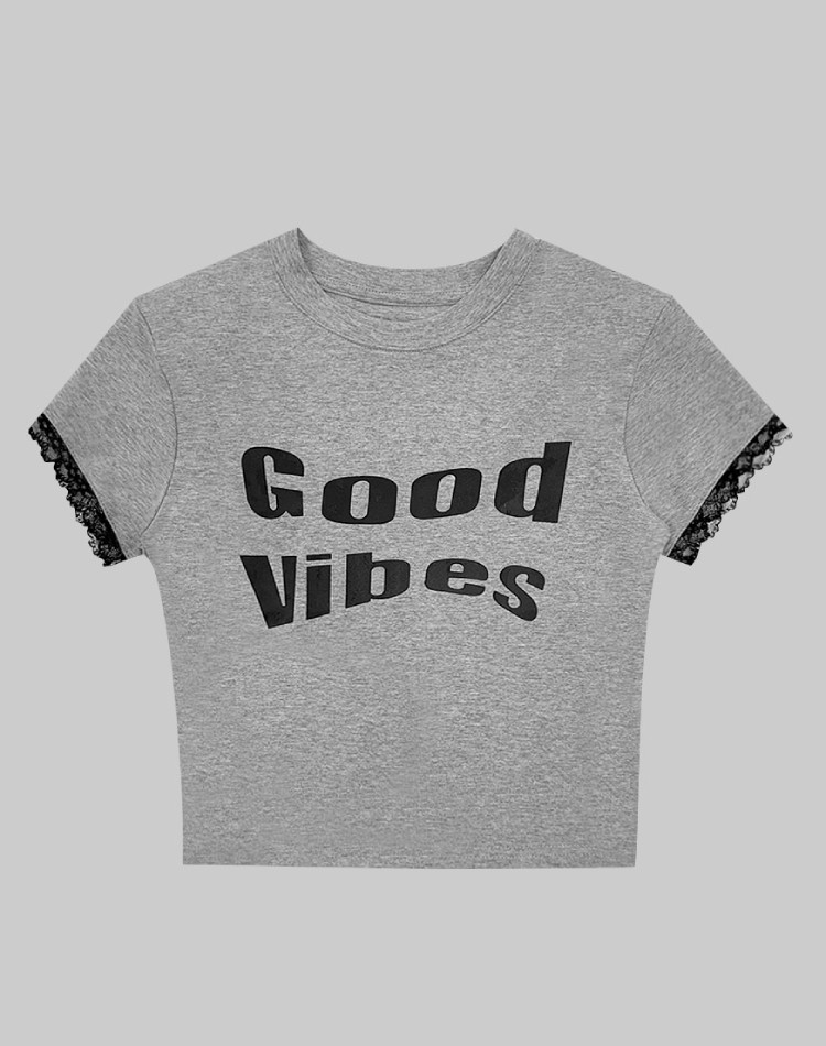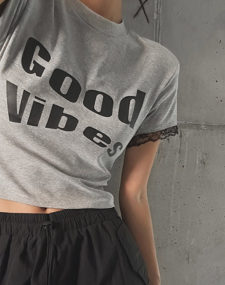 Design Details: The "Good Vibes" lettering print on the front adds a relaxed vibe, while shoulder pads help to correct sagging shoulders and create a beautiful silhouette.