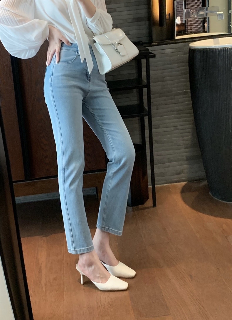 Nine-point cigarette pants, suitable for pear/apple-shaped figures, medium-high waist and slightly tapered tailoring, calf narrowing 5mm leg bend/muscle leg one-click invisible.