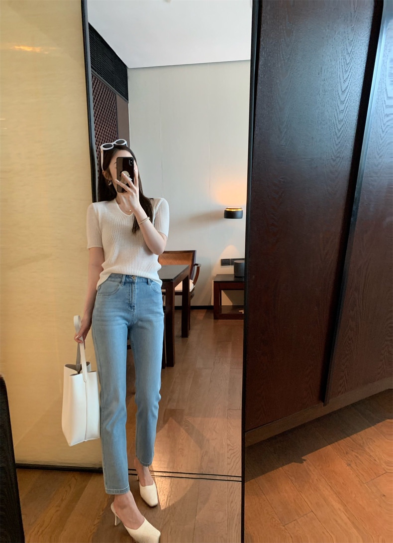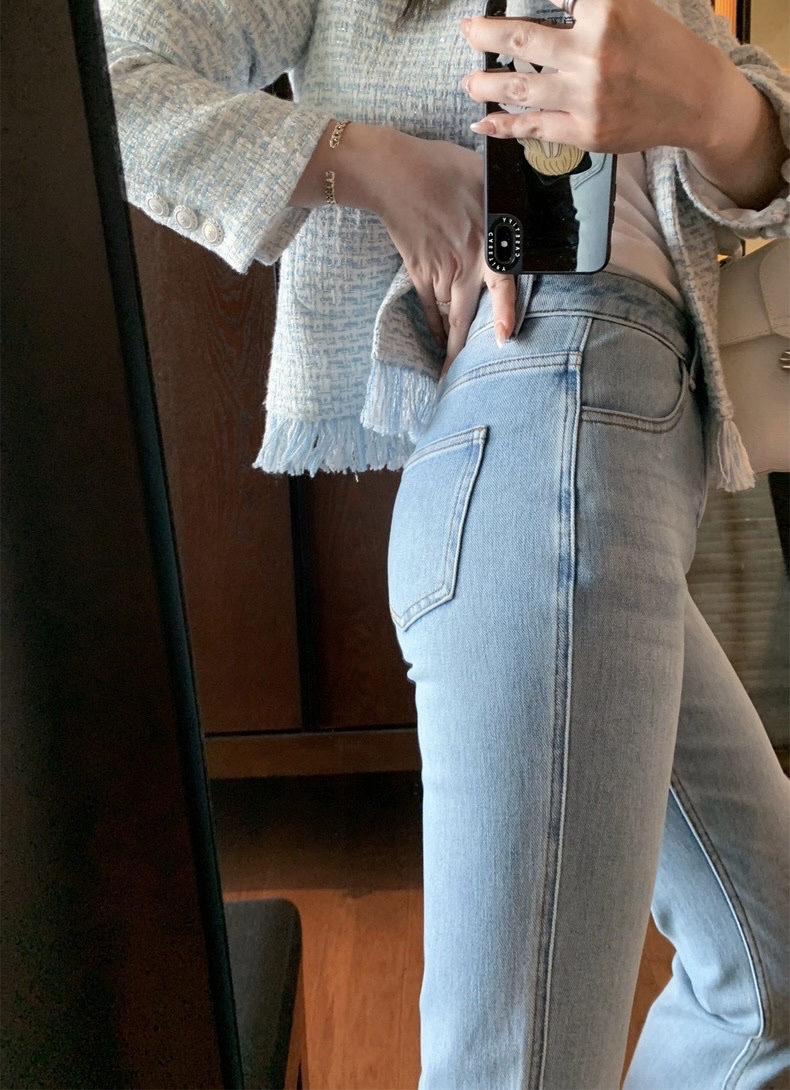 The outer layer is made of natural cotton fiber and Lycra fiber, which enhances wrinkle resistance and is not easy to pilling. The high-quality double-core yarn fabric perfectly combines the elasticity and style required by jeans, saying goodbye to the restraint and dullness of ordinary jeans, and lasting shaping without tightness.