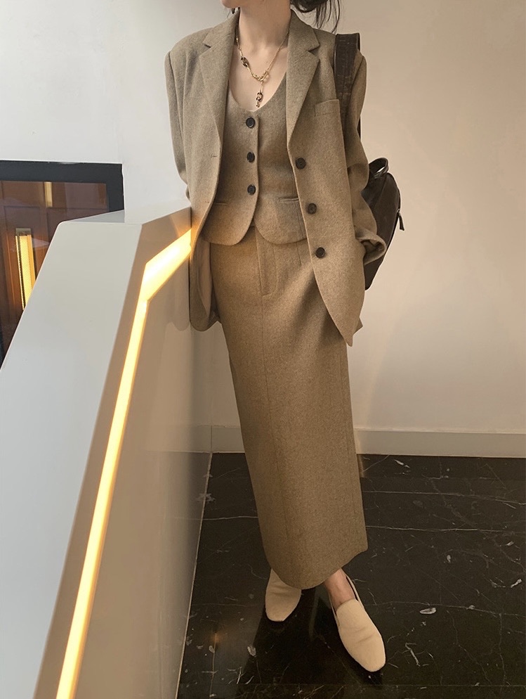 The classic straight silhouette with a minimalist flat lapel, the upper body lines are neat and straight, loose and accommodating, retaining the traditional single-side chest pocket and symmetrical pocket cover design, eliminating unnecessary structural decorations, and matching a variety of high-end styles.