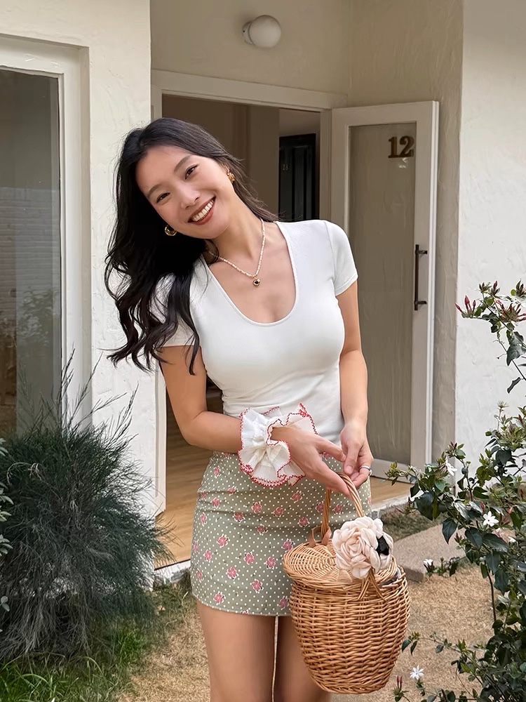 Green Printed Skirt A-line Short Skirt With Built-in Anti-exposure Safety Pants