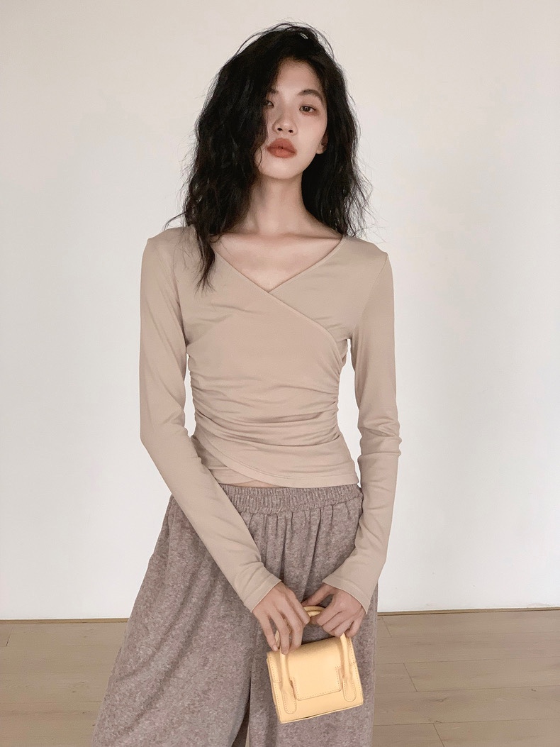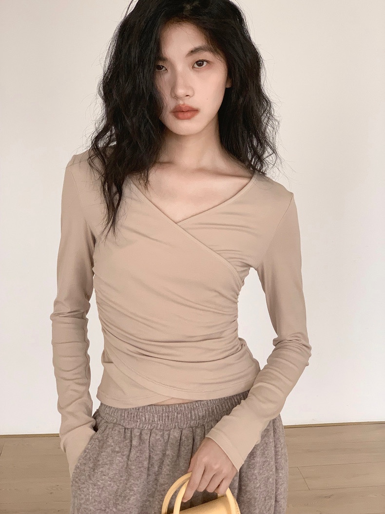 The front of the body has a two-piece overlapping design, forming an elegant V-neck, showing the clavicle and optimizing the shoulder and neck lines, with just the right amount of skin exposure