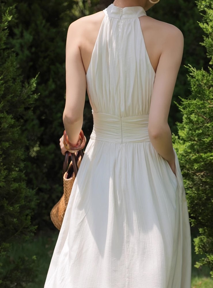 Ivory Halterneck Long Dress, Elegant Dress