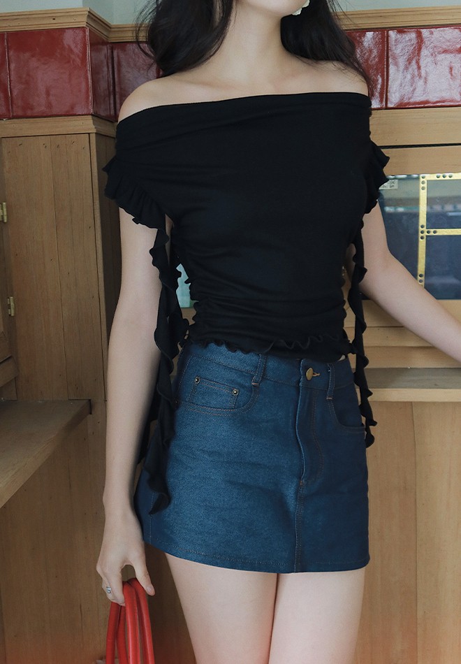 Popular ruffle elements, slim fit, sexy one-shoulder neckline design.
