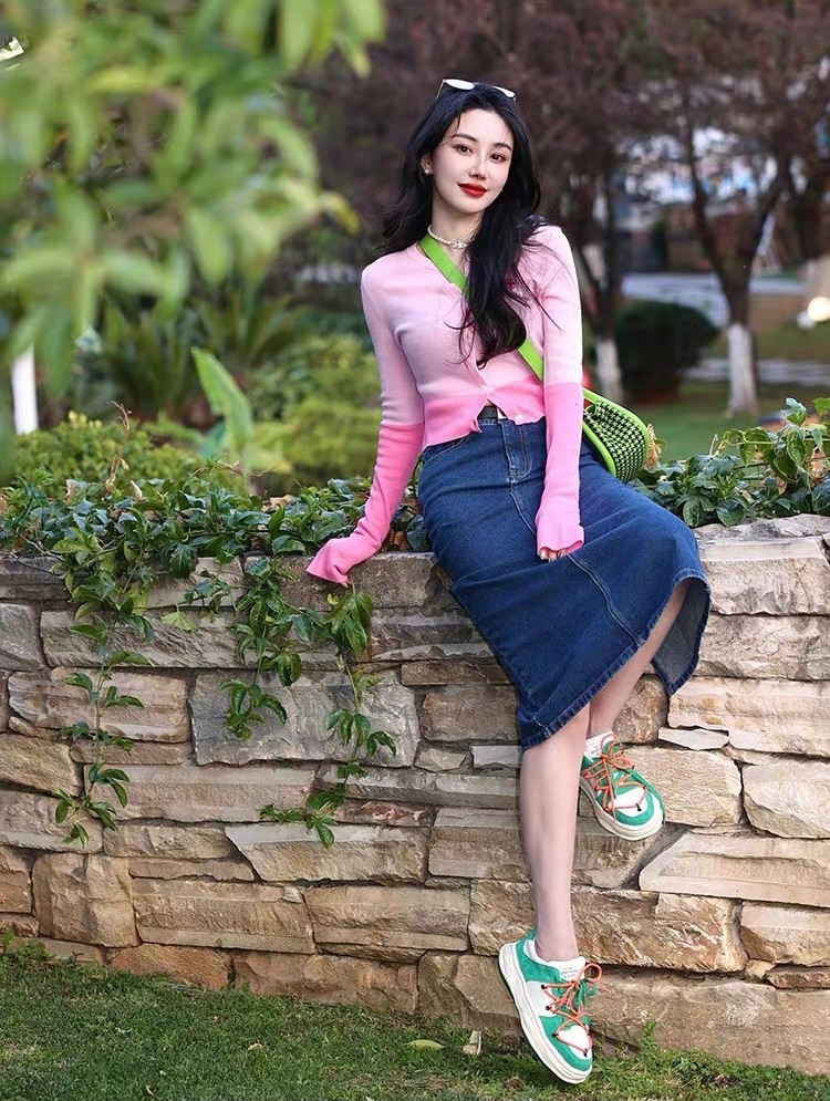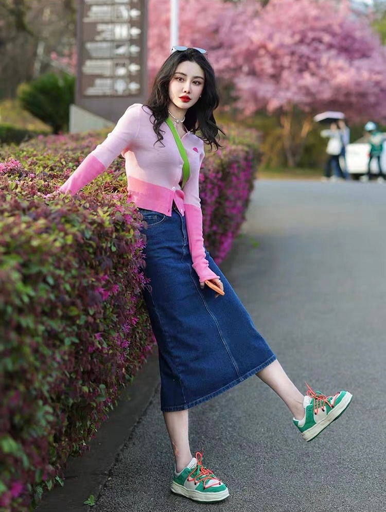 V-neck Knit Cardigan Early Fall Jacket Goose Yellow Hem Shirt And Slim Fit Top