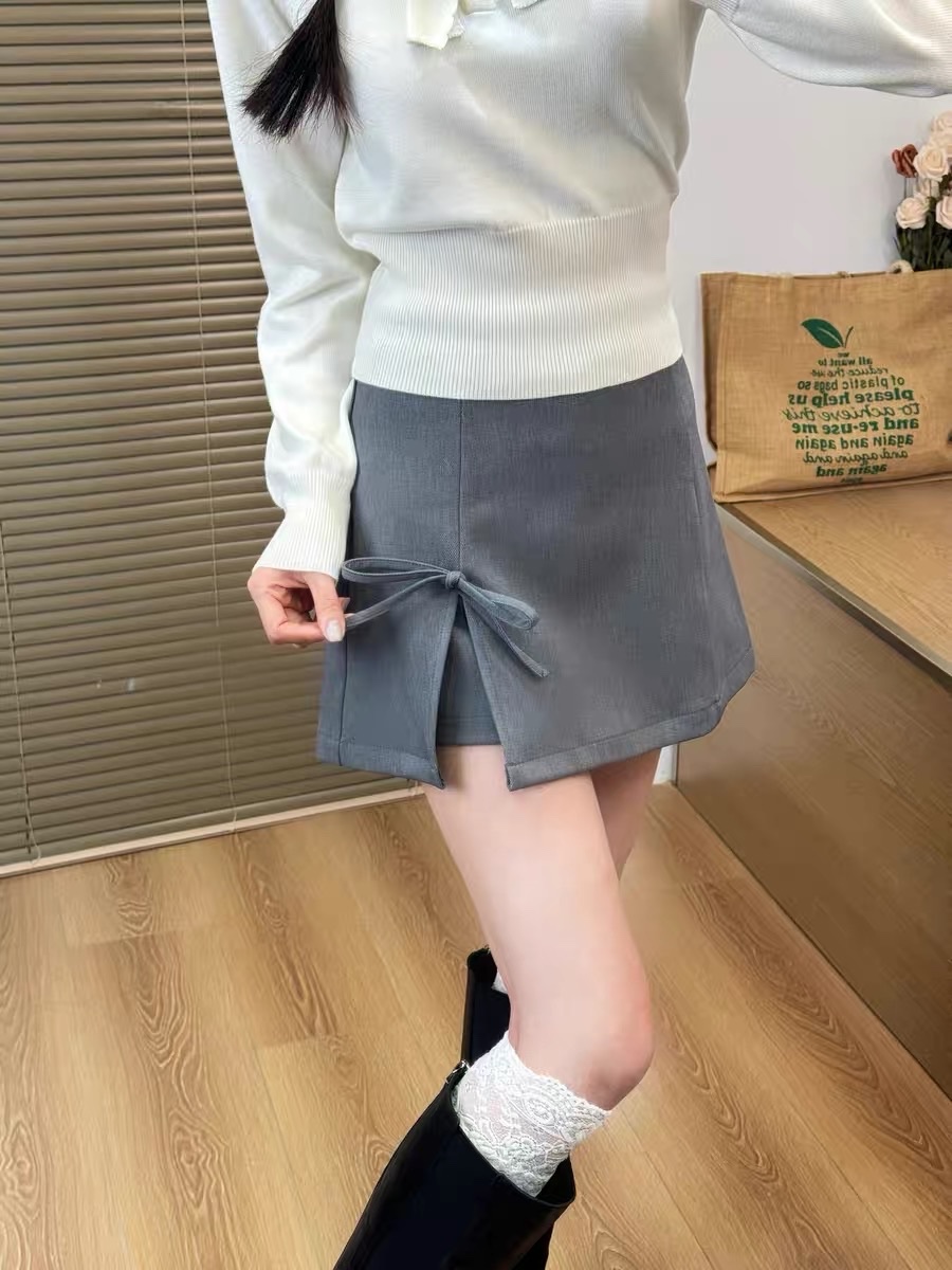 The gray texture is high-end, and the bow tie design at the hem is a feature that stands out from the ordinary A-line skirt.