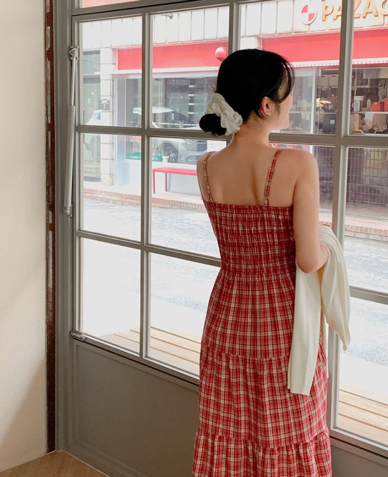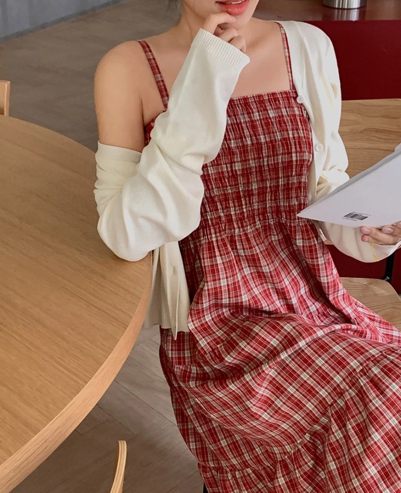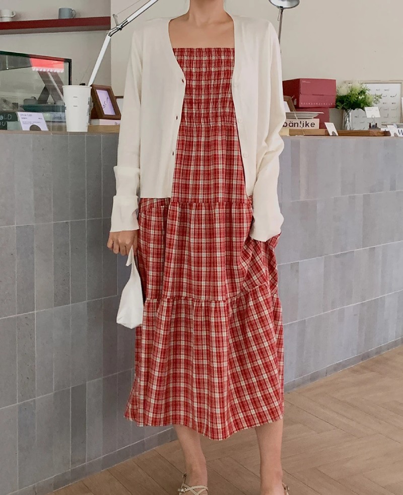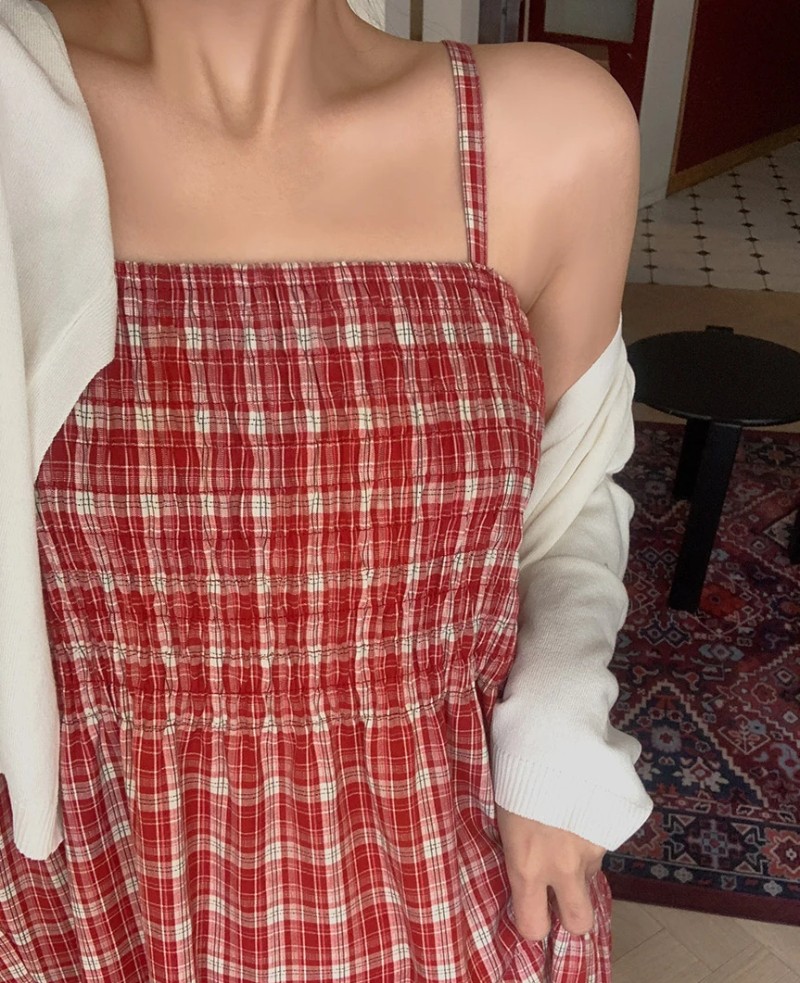 The classic red and white plaid pattern evokes a retro vibe and harmonizes with the soft layered skirt. Every detail exudes delicacy and romance, allowing you to create a beautiful style worthy of a magazine photoshoot.