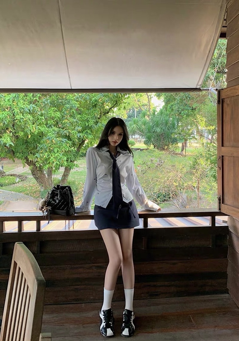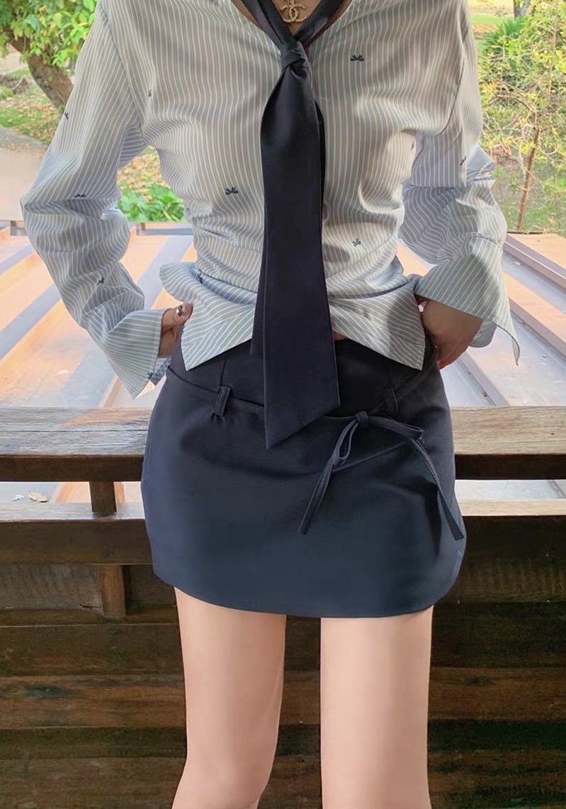 Paired with a classic gray A-line skirt, this is the perfect summer style to wear.