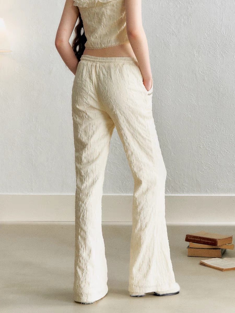 The elastic waistband does not flatter the figure, making it appear slimmer and taller without showing wider hips and covering the lack of leg shape.