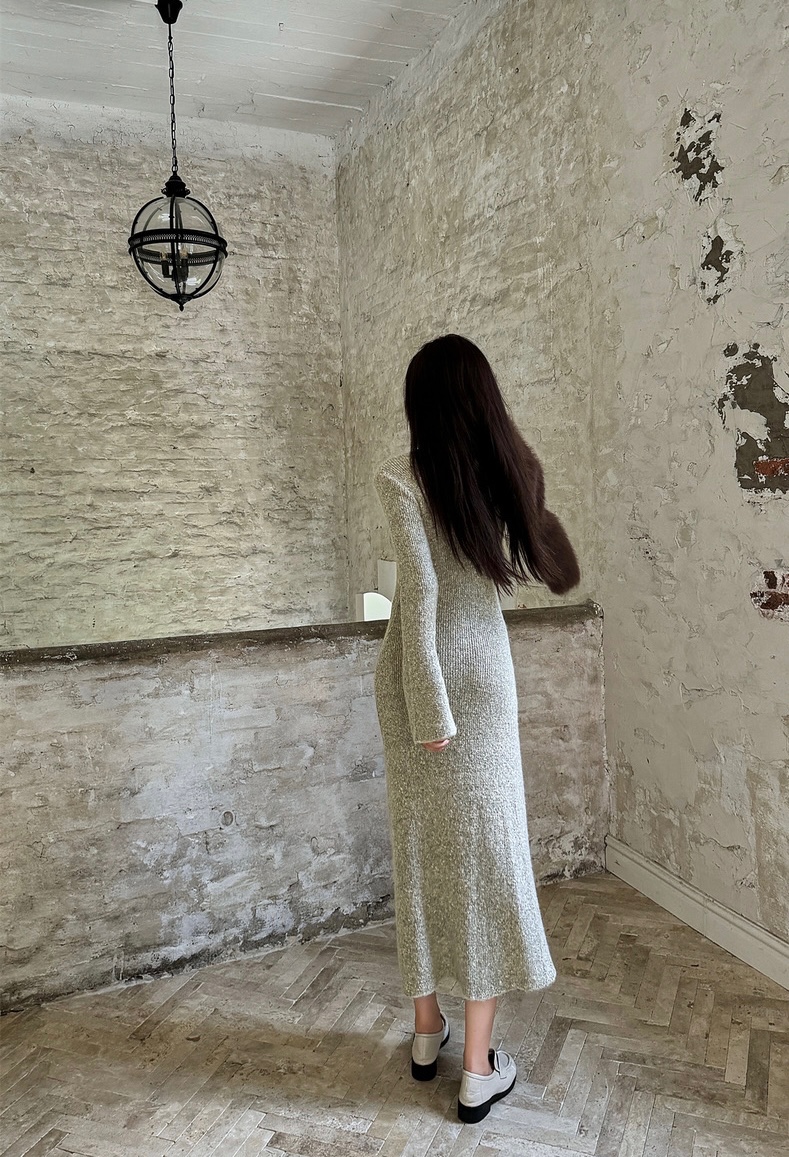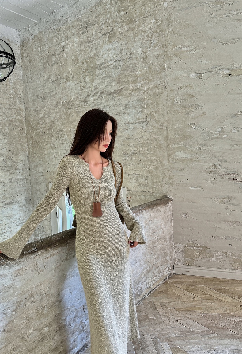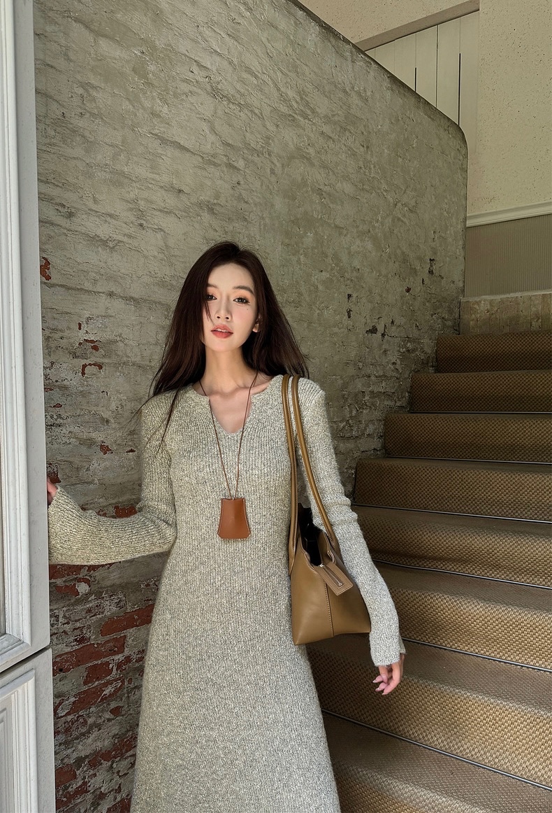 The v-neck long dress is slim and long, showing temperament and elegance.