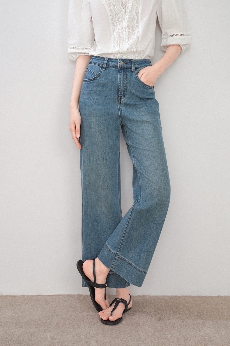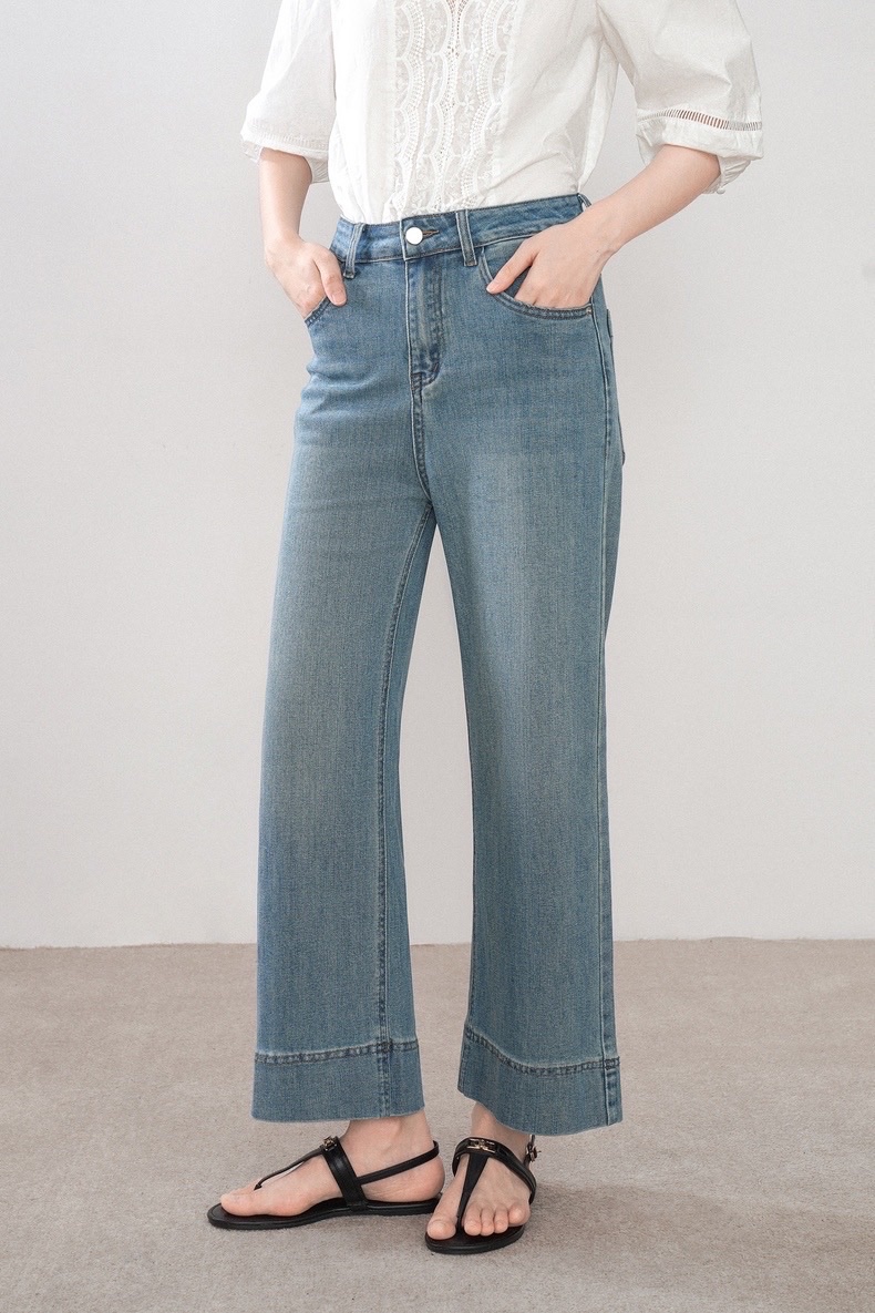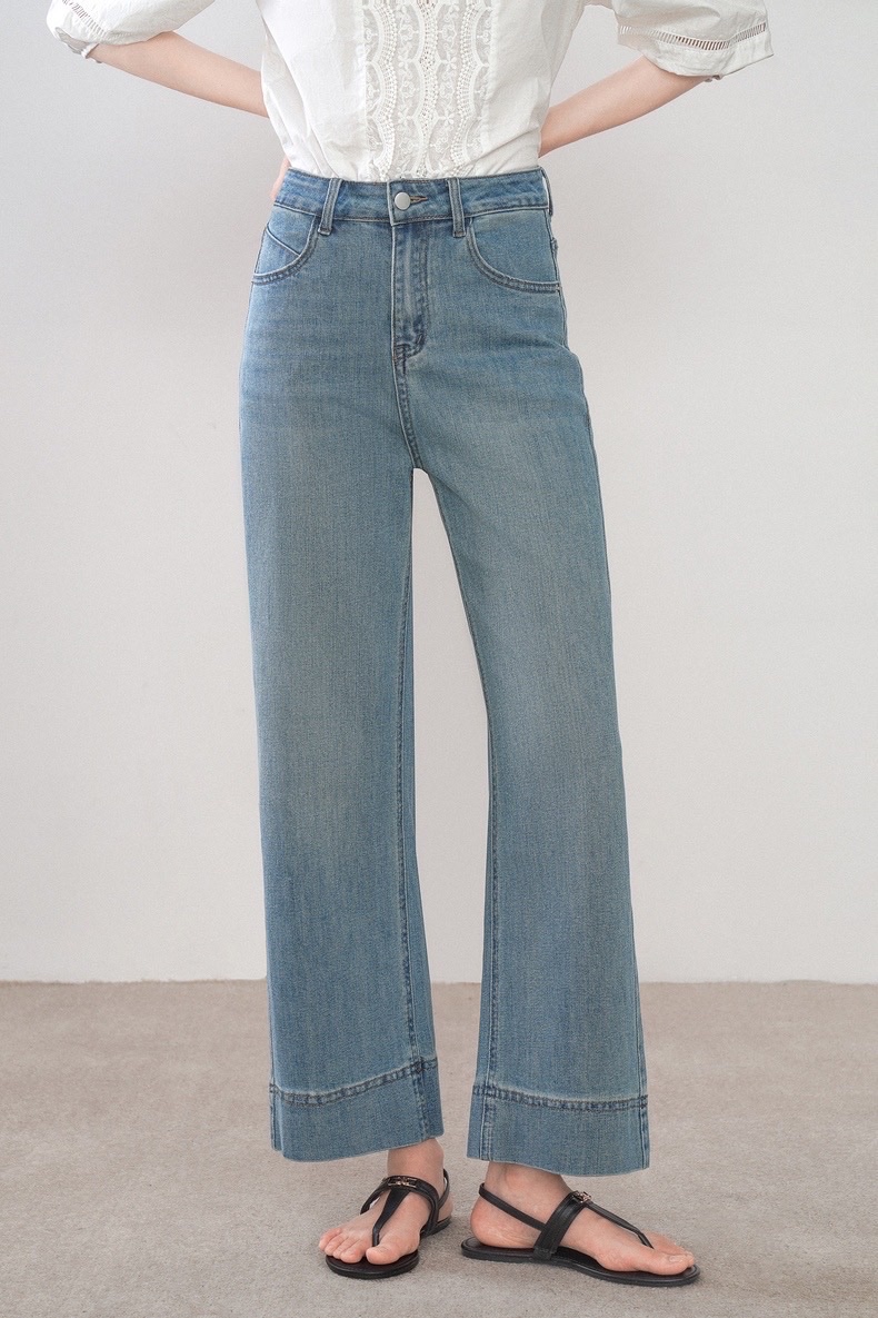 Women's High Waist Wide Leg Pants Light Blue Jeans Loose Ankle Length Straight Pants