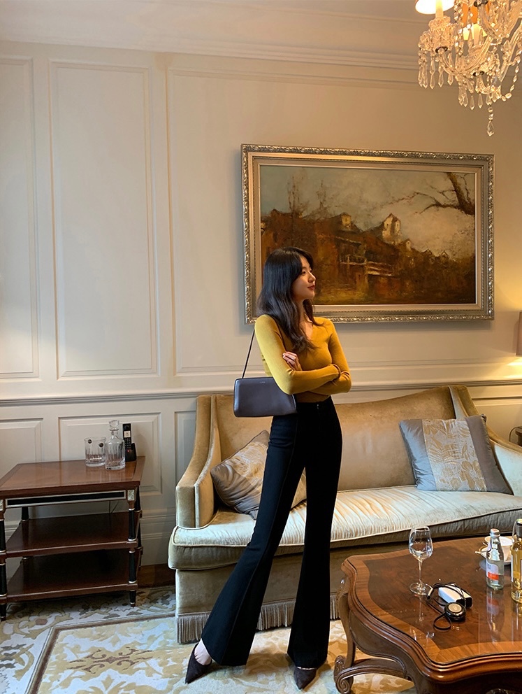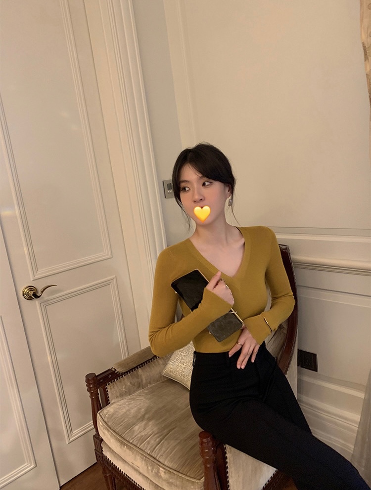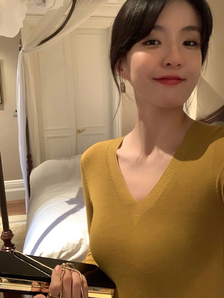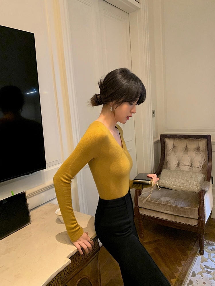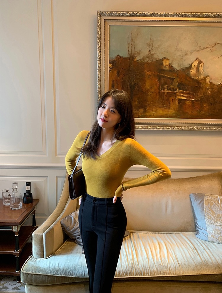 The particularly deepened arc V-neck, the upper body is slightly open, sexy and charming, but also reserved and not exposed. It has both daily matching and fashionable recognition. It belongs to a very amazing base series for the upper body.